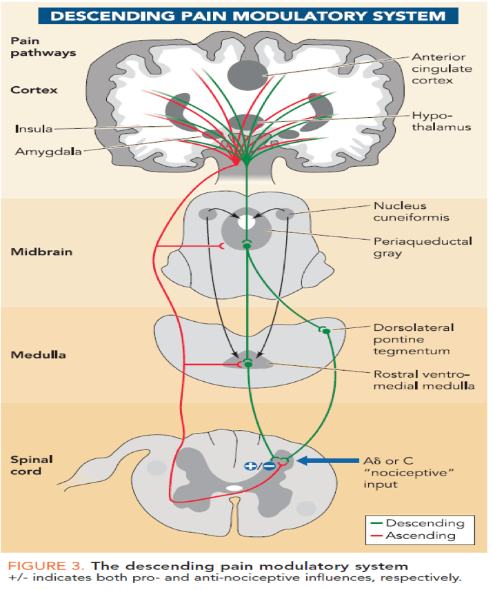 Physiopedia, referenced article titled, “Descending Inhibitory Pathways.”